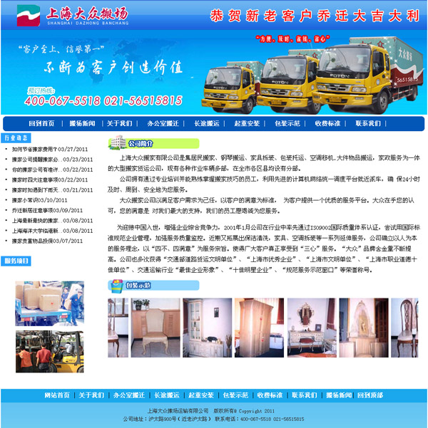 大眾搬家公司以滿足客戶需求為己任,以客戶的滿足為尺度, 為客戶提供一個優(yōu)質(zhì)的服務(wù)平臺。大眾在乎您的承認,您的滿足是 對我們最大的支持,我們的員工愿竭誠為您服務(wù)。