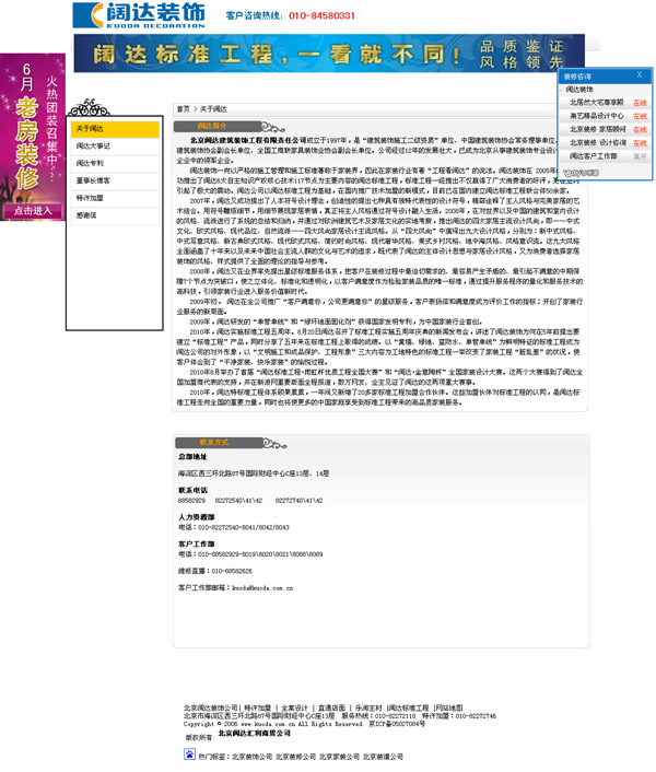 2009年初, 闊達在全公司推廣“客戶滿足你,公司更滿足你”的星級服務,客戶表彰信和滿足度成為評價事故的指標;開創(chuàng)了家裝行業(yè)服務的新局面。