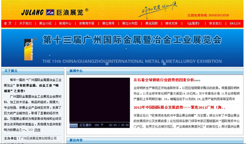 由廣州巨浪展覽策劃有限公司舉辦的每年一屆的“廣州國際金屬暨冶金工業(yè)展覽會”已發(fā)展成為世界金屬、冶金工業(yè)“晴雨表”之美譽(yù)!