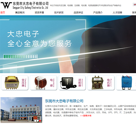 電子變壓器、電感器、電源適配器網(wǎng)站建設(shè)公司,做網(wǎng)站優(yōu)化關(guān)鍵詞排名SEO,營銷型,手機(jī)網(wǎng)站建設(shè),響應(yīng)式,品牌型,電商/門戶,電子變壓器、電感器、電源適配器外貿(mào)型網(wǎng)站建設(shè). 東莞市大忠電子有限公司是一家集研發(fā)、生產(chǎn)、銷售為一體的專業(yè)電子變壓器、電感器、電源適配器制造廠商。