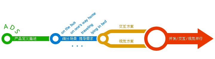 從源頭的戰(zhàn)略層面上建立了統(tǒng)一的認(rèn)知,我們接下來(lái)開展的工作就有根據(jù)了。既然核心是解決“移動(dòng)場(chǎng)景聽歌“的問題,我們必須首先弄清楚什么是”移動(dòng)場(chǎng)景“?移動(dòng)環(huán)境和PC環(huán)境差異甚大,碎片時(shí)間的使用更為突出。用戶一天是怎么活動(dòng)的呢?每次拿起手機(jī)聽音樂都是什么時(shí)間?上班的公車上、走路、晚上睡覺前?在這些點(diǎn)上用戶都會(huì)做些什么?簡(jiǎn)單的腦暴可以羅列各個(gè)可能的使用場(chǎng)景,但還比較粗糙。場(chǎng)景的構(gòu)想需要建立在高度的認(rèn)知上,這時(shí)候用研的切入顯得相當(dāng)關(guān)鍵,用戶特征、喜好、使用習(xí)慣…對(duì)用戶越了解,場(chǎng)景就越能貼近真實(shí)、越能發(fā)現(xiàn)更多的細(xì)節(jié)。這些都為后續(xù)的設(shè)計(jì)決策提供了有力的依據(jù)。