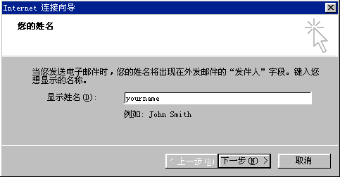 4.首先輸入您的顯示姓名,此姓名將出現在您所發送郵件的"寄件人"一欄;