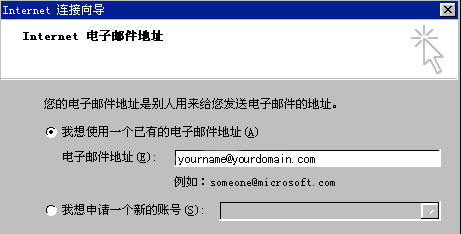 6.在彈出的窗口中輸入您的郵箱地址.例如yourname@yanet.cn