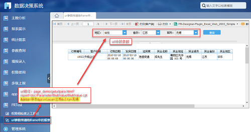 江蘇&city=無錫,名稱為:url參數(shù)傳遞給iframe中的報表,如下圖: